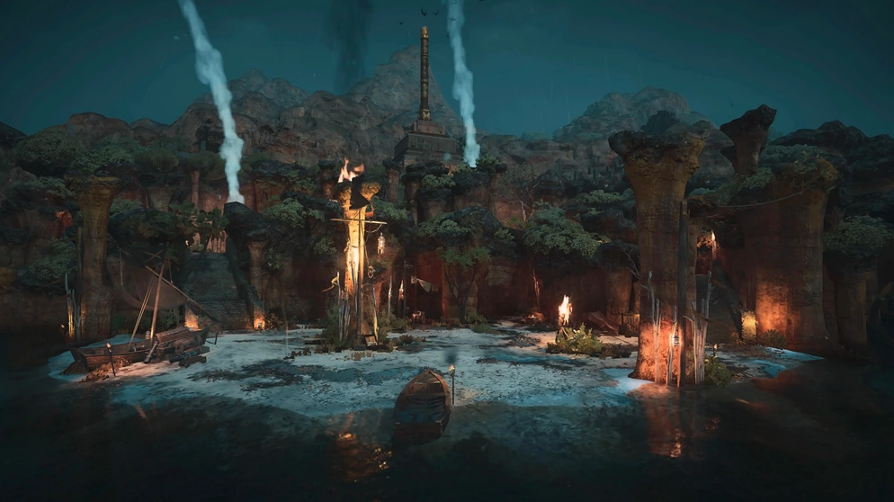 Pillar Tomb is a Pirate Outpost and the burial place for Ungwanan kings of old. Pillar Tomb is found in Pembe along the northwest corner of the Coast of Africa. To get there from Sainte Anne, head north west and cut through the canals of Jiwe for the fastest route to Pillar Tomb.